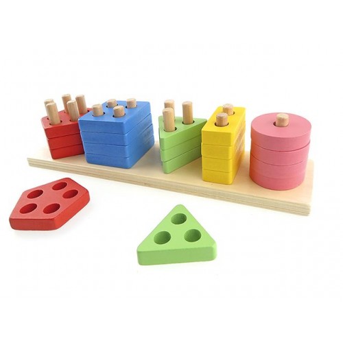 Tablanın üstünde bulunan çubuklara,çubuklarla uyumlu geometrik şekiller yerleştirilir.