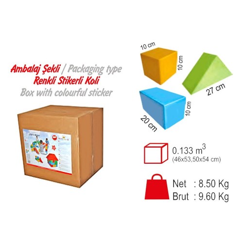 Polistiren (PS)’den üretilmiştir. Çeşitli renk ve şekillerde 60 bloktan oluşur. Çocukların okul öncesi motor becerilerini destekler, hayal gücü ve yaratıcılığını geliştirir. El-göz koordinasyonuna katkıda bulunur.