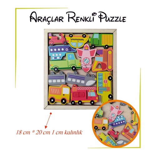 Tabla ölçüsü 20 x 18 x 1 cm UV baskı kullanılmıştır 12 Adet puzzle parçası ( araçlar ) 10 Adet puzzle parçası ( sayılar ) 8 Adet puzzle parçası ( çiftlik hayvanları)