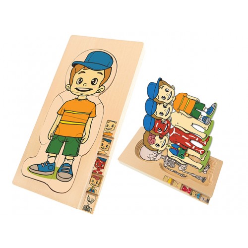 Vücudumuzun bölümlerini ve katmanlarınıöğrenir. Karşılaştırma ve eşleştirme yapar. Zihinsel gelişimini destekler. İnce motor gelişimine yardımcı olur. Ahşaptan üretilmiştir. Ölçüsü 29.5 x 14.5 x 2 cm'dir.