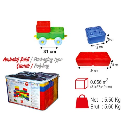 Plastik Arabalı Tuğla 40 Parça King Kids